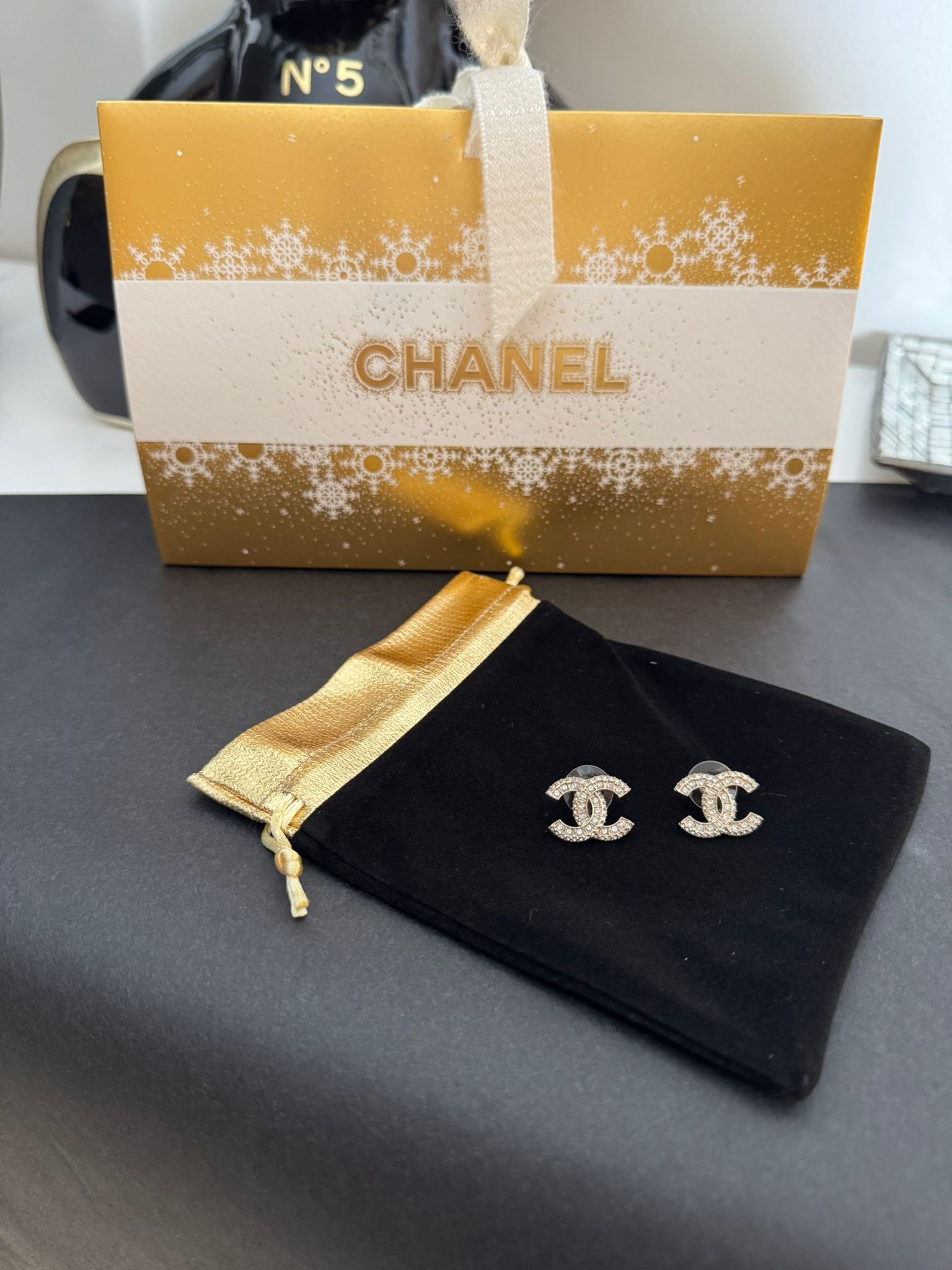 Les Boucles D’oreilles seront livrées dans la pochette velours et la boîte cartonnée Chanel dorée .