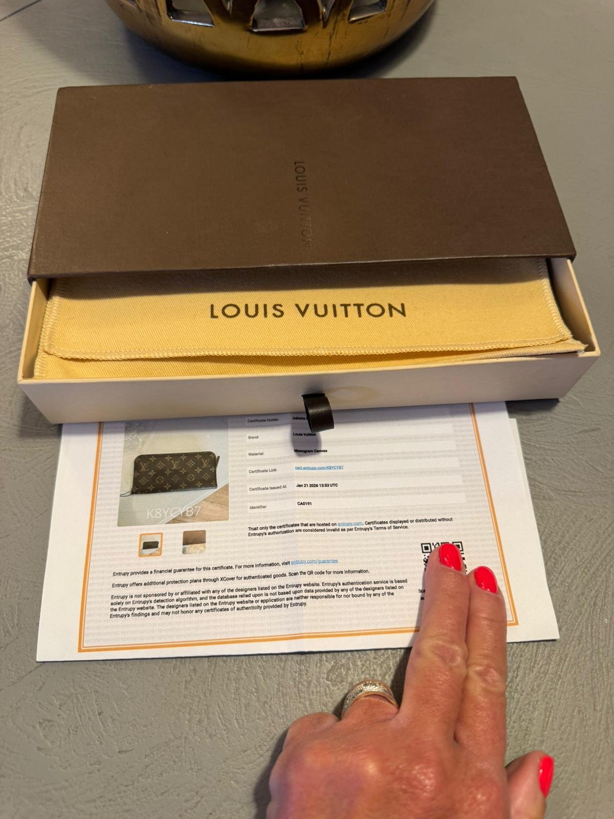 • Certificat d’authenticité Entrupy