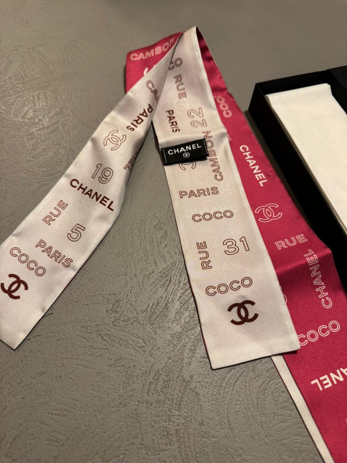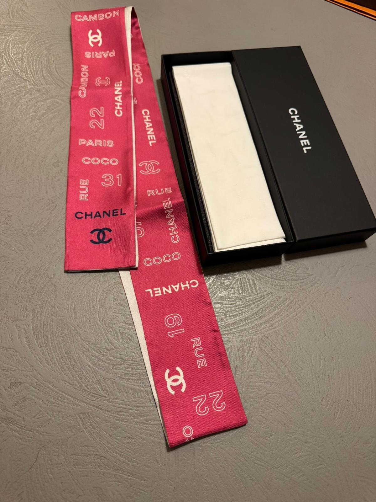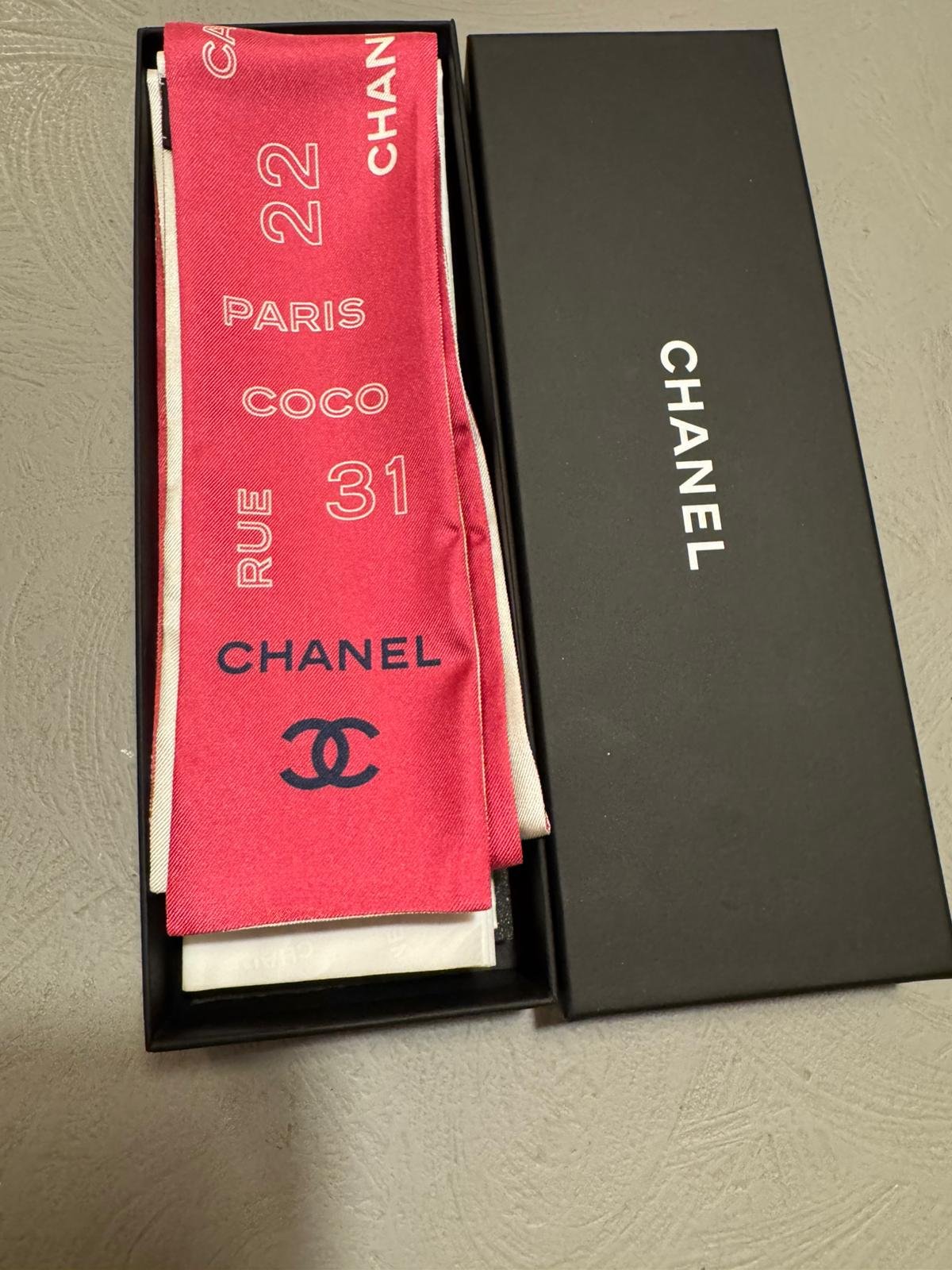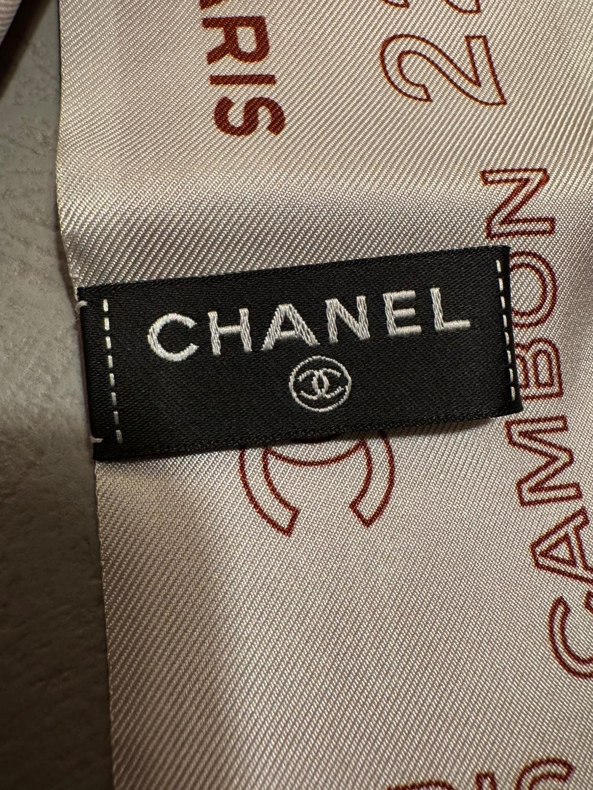 ✨ “Twilly en soie signé Chanel , neuf et jamais porté. Un accessoire iconique qui habille élégamment la poignée d’un sac, se porte autour du cou ou au poignet pour une touche mode raffinée